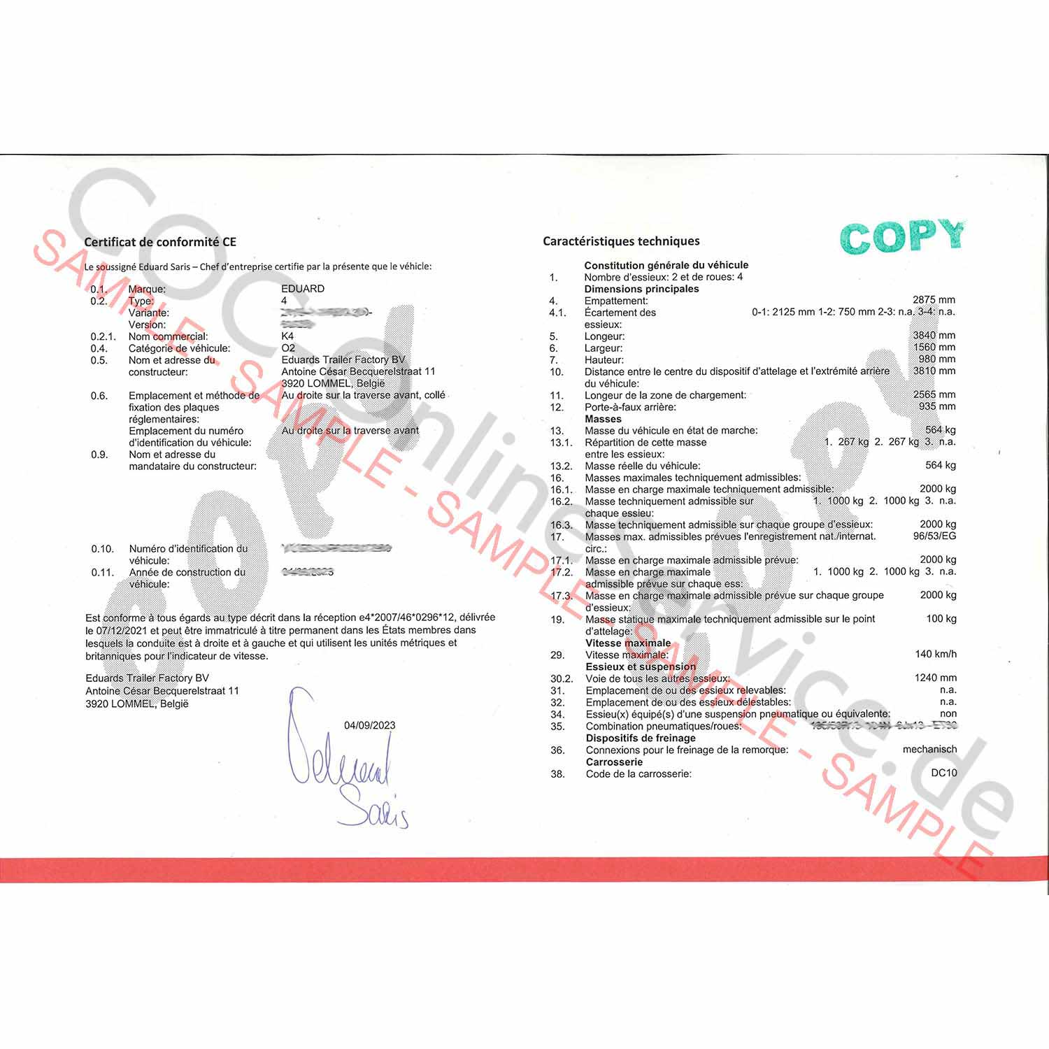 - Original document of Eduards Trailer Factory BV