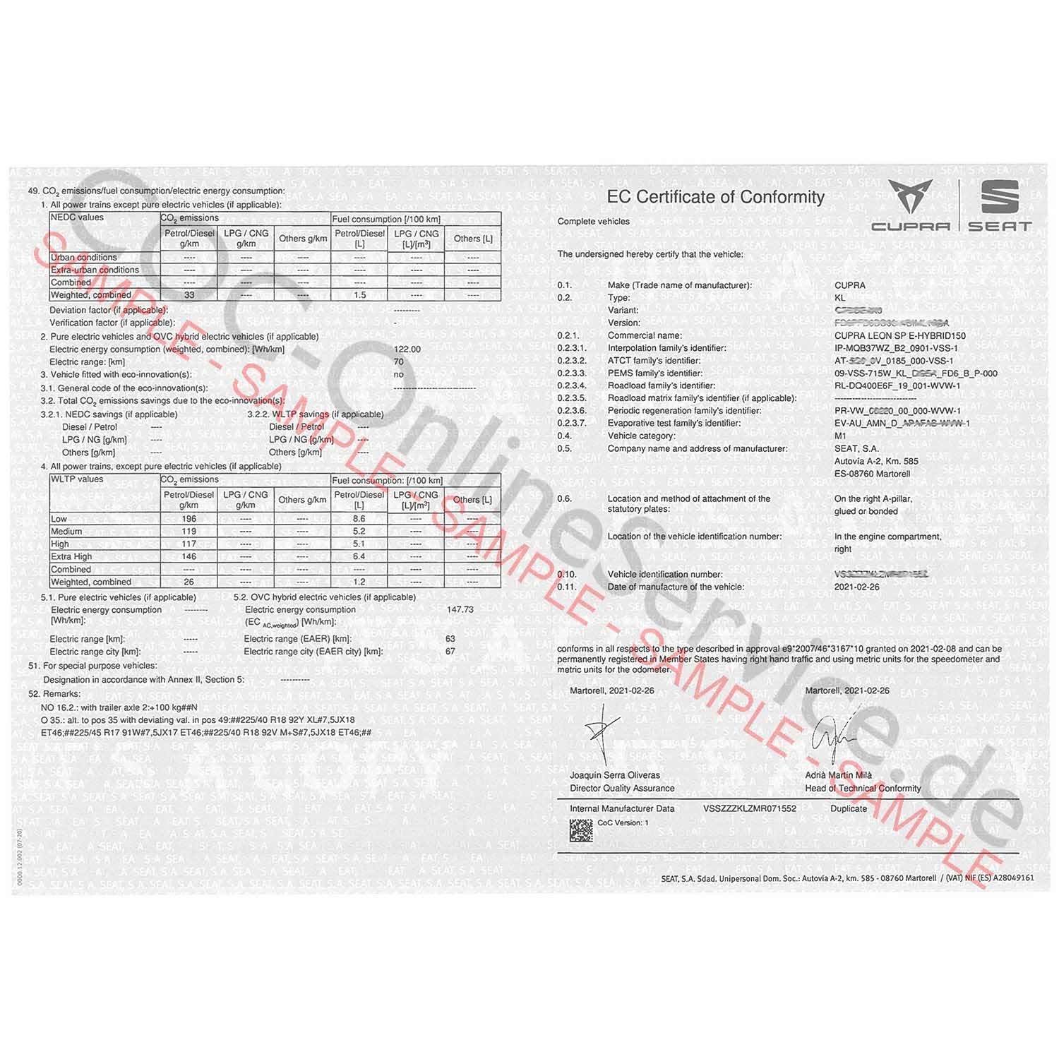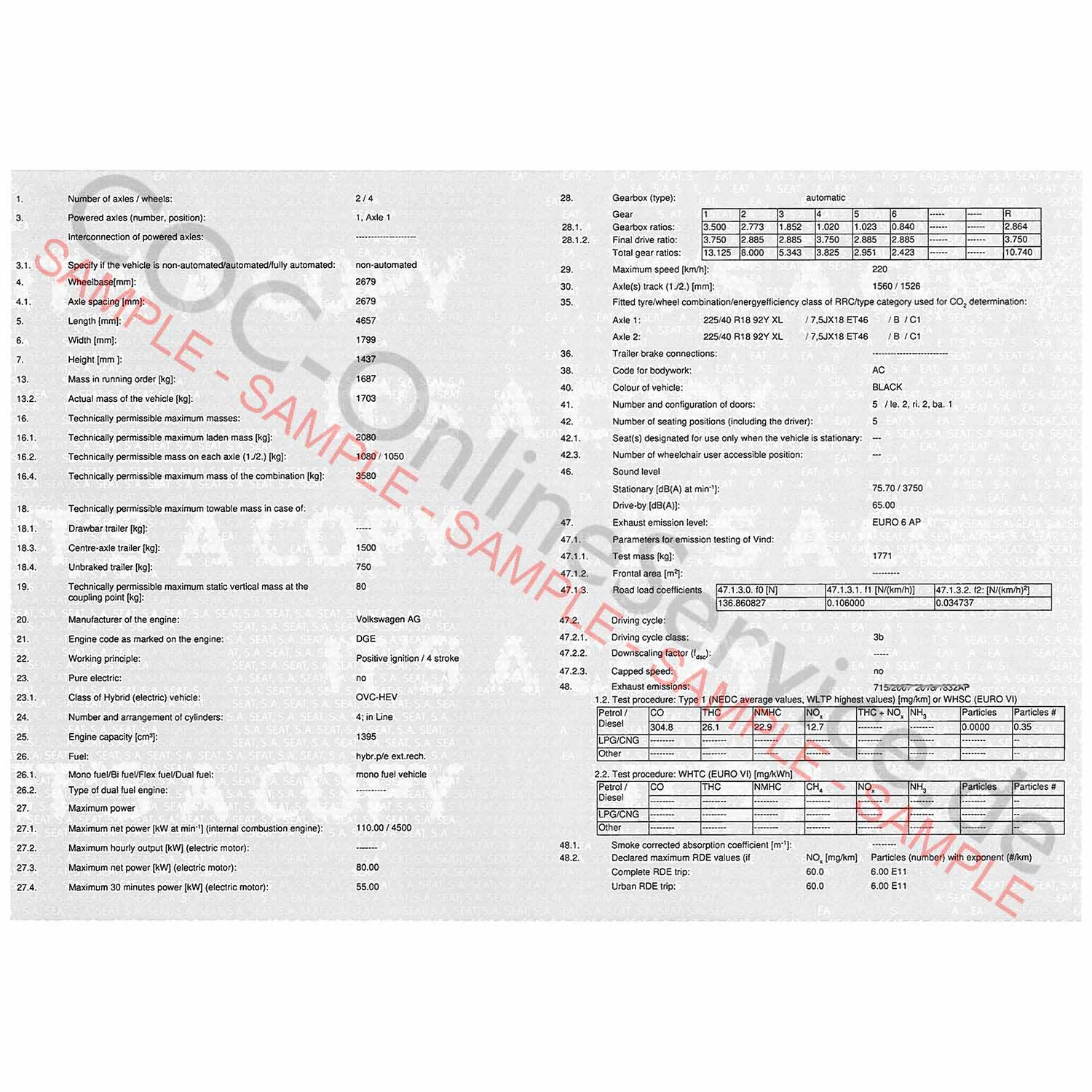 Si la livraison d'un COC pour votre numéro de châssis (VIN) n'est pas possible, par exemple parce que le véhicule est trop ancien ou n'a pas été construit pour le marché européen, nous annulons immédiatement la commande et remboursons l'intégralité du prix d'achat.