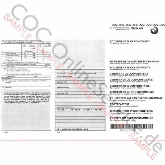 COC-dokumenter til BMW (Certificate of Conformity)