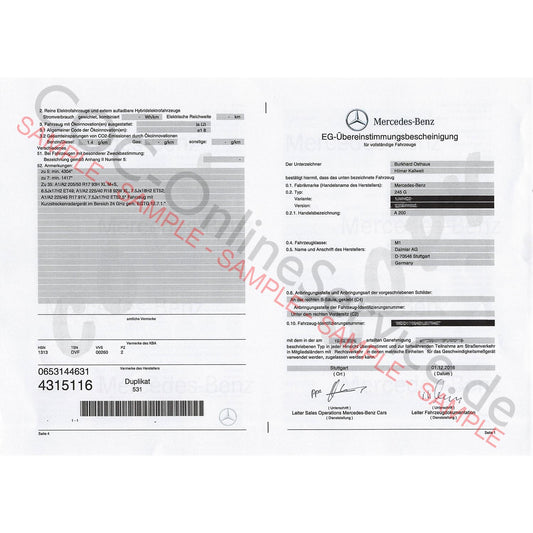 COC-dokumenter til Mercedes-Benz (Certificate of Conformity)