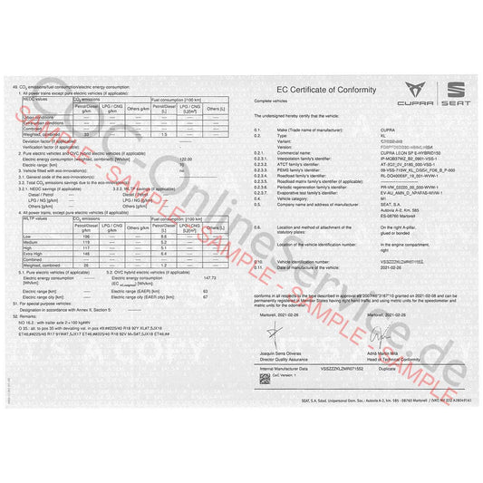 COC dokumenty pro SEAT (Certificate of Conformity)